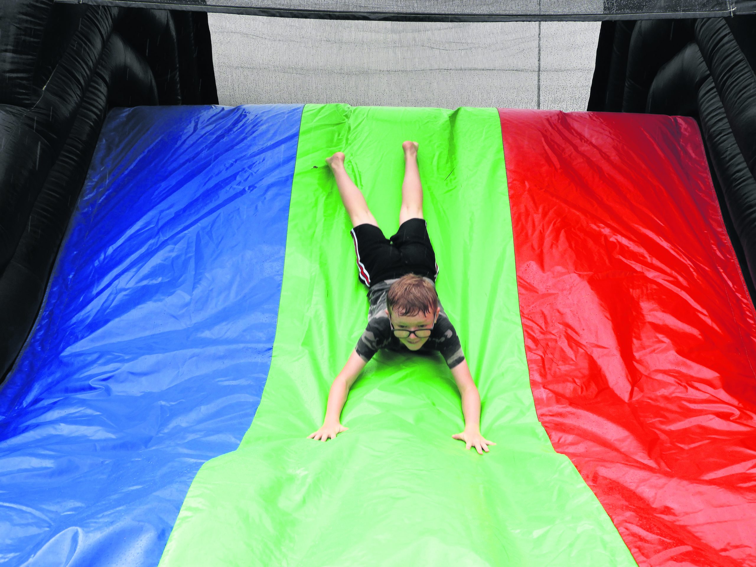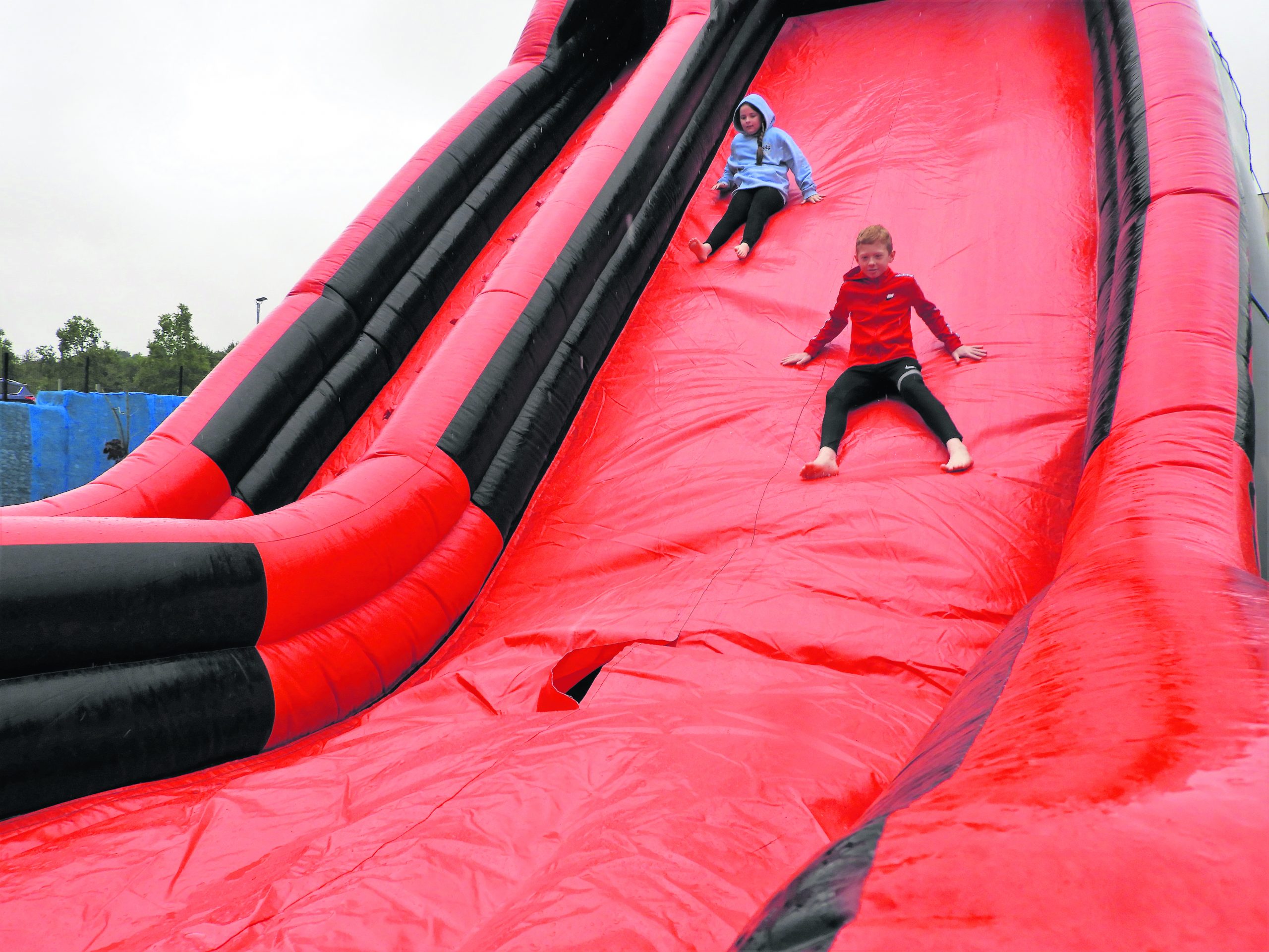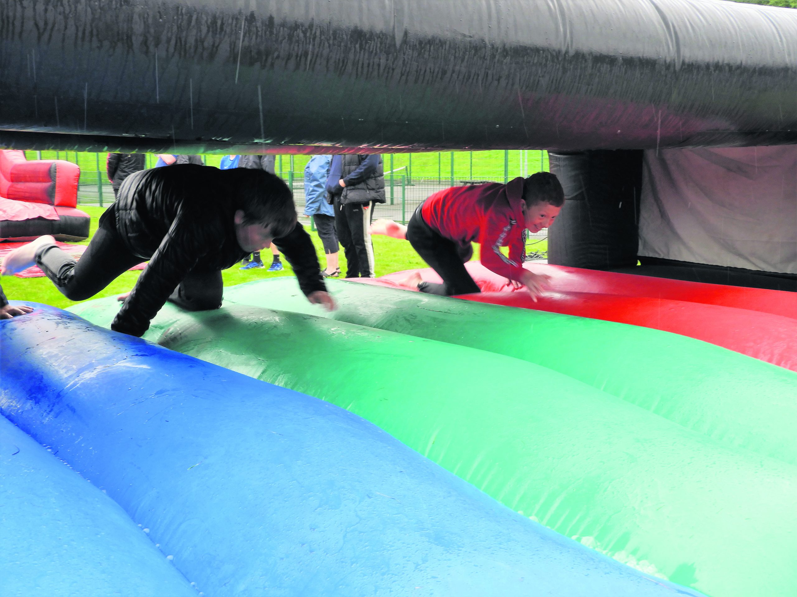 But it was not all about diving around on inflatable obstacle courses and sliding down what turned out to be a soaking wet slope.