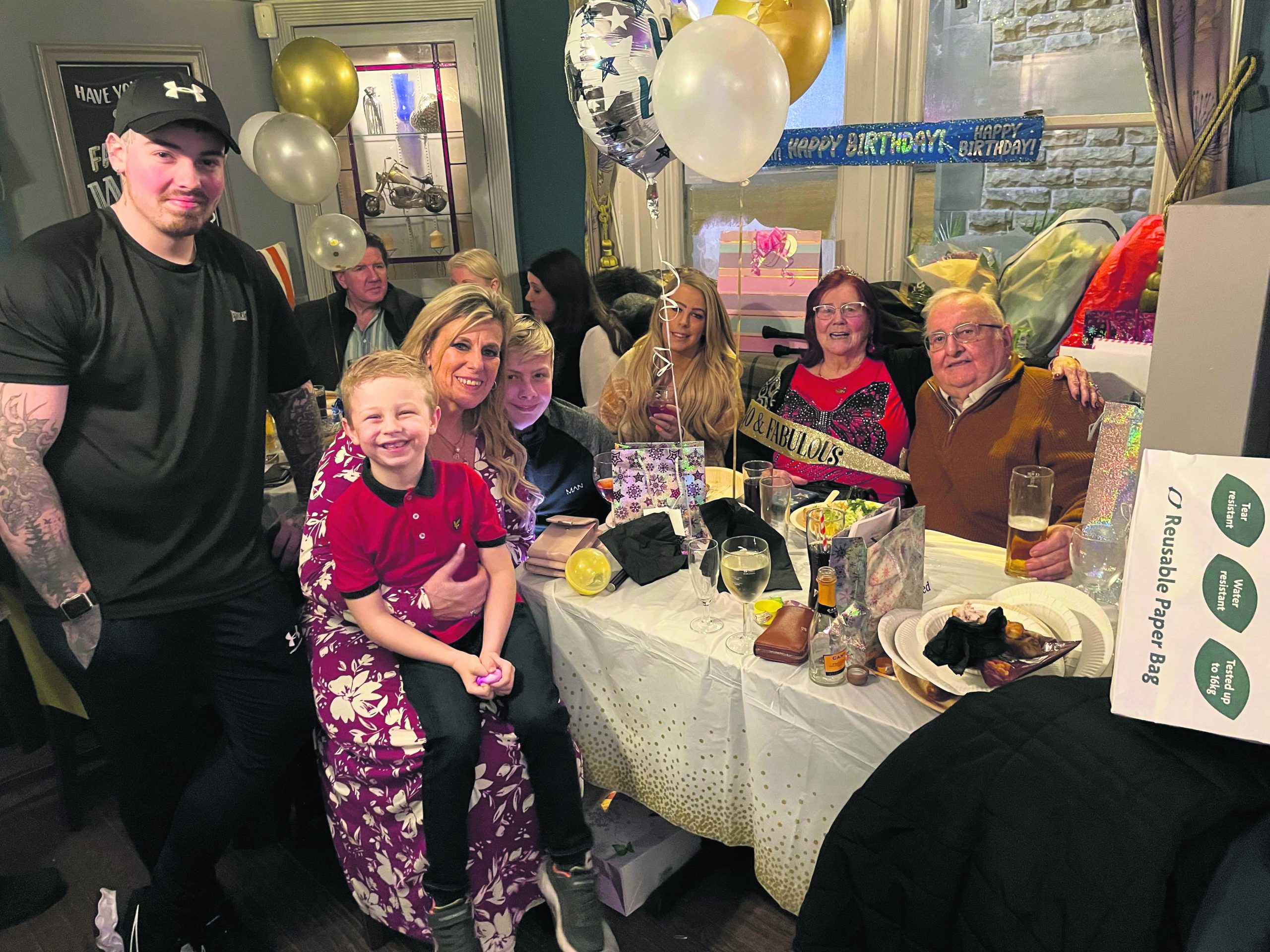 But her remaining daughter, Debbie, gave her a shock by secretly travelling up from the south of England with two of her grandchildren for a celebration at Hollingworth’s Gun Inn.
