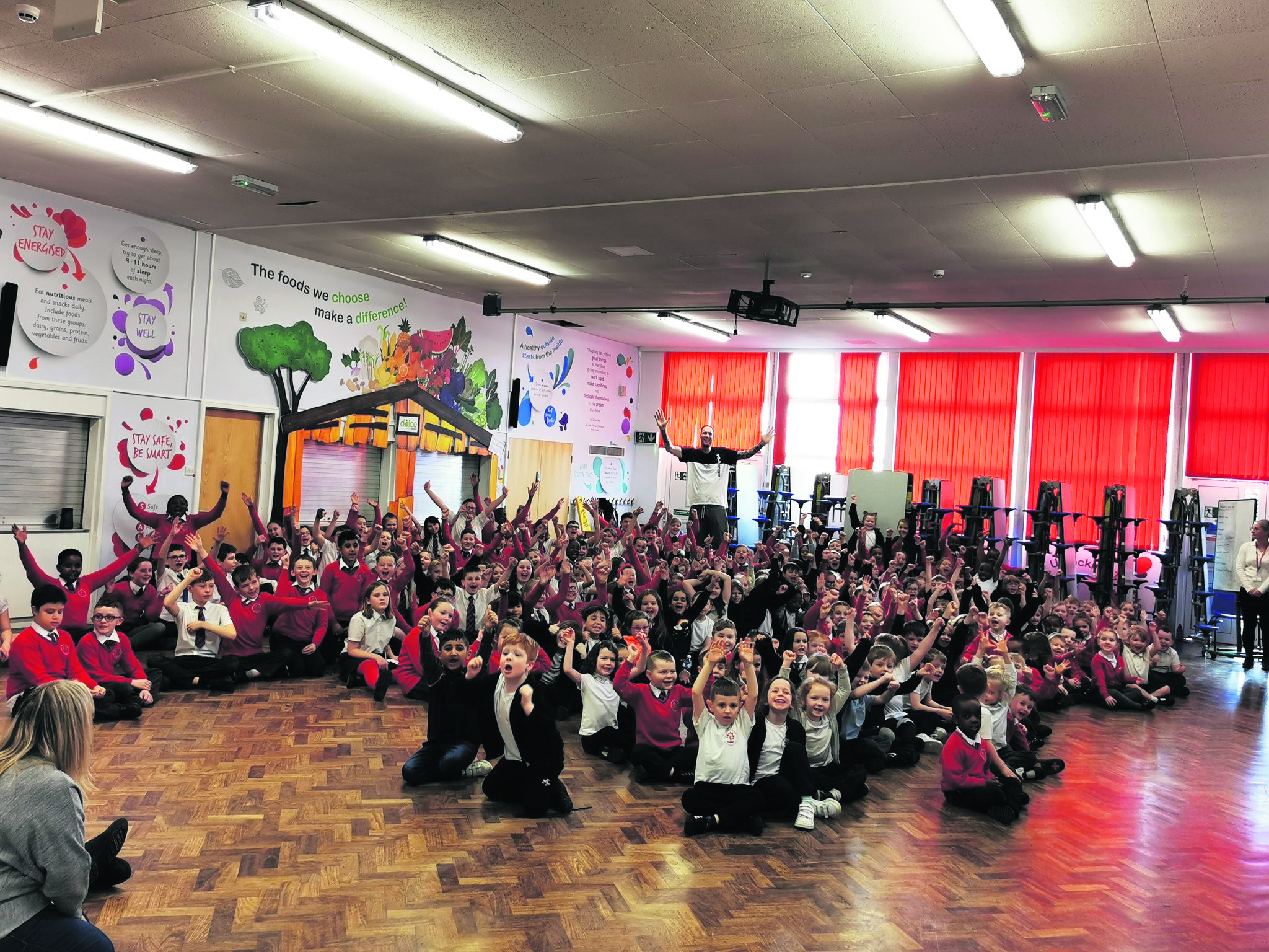 His tour of schools included a day at Arlies Primary, Sturgess, who has played for Cheshire Phoenix in the British Basketball League, where he put on basketball drills for the children as well as showcasing his skills.
