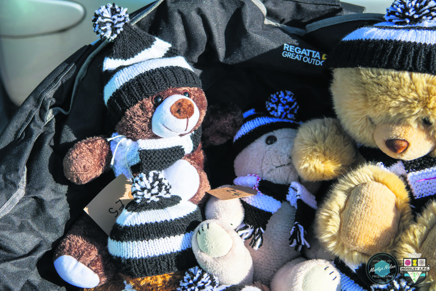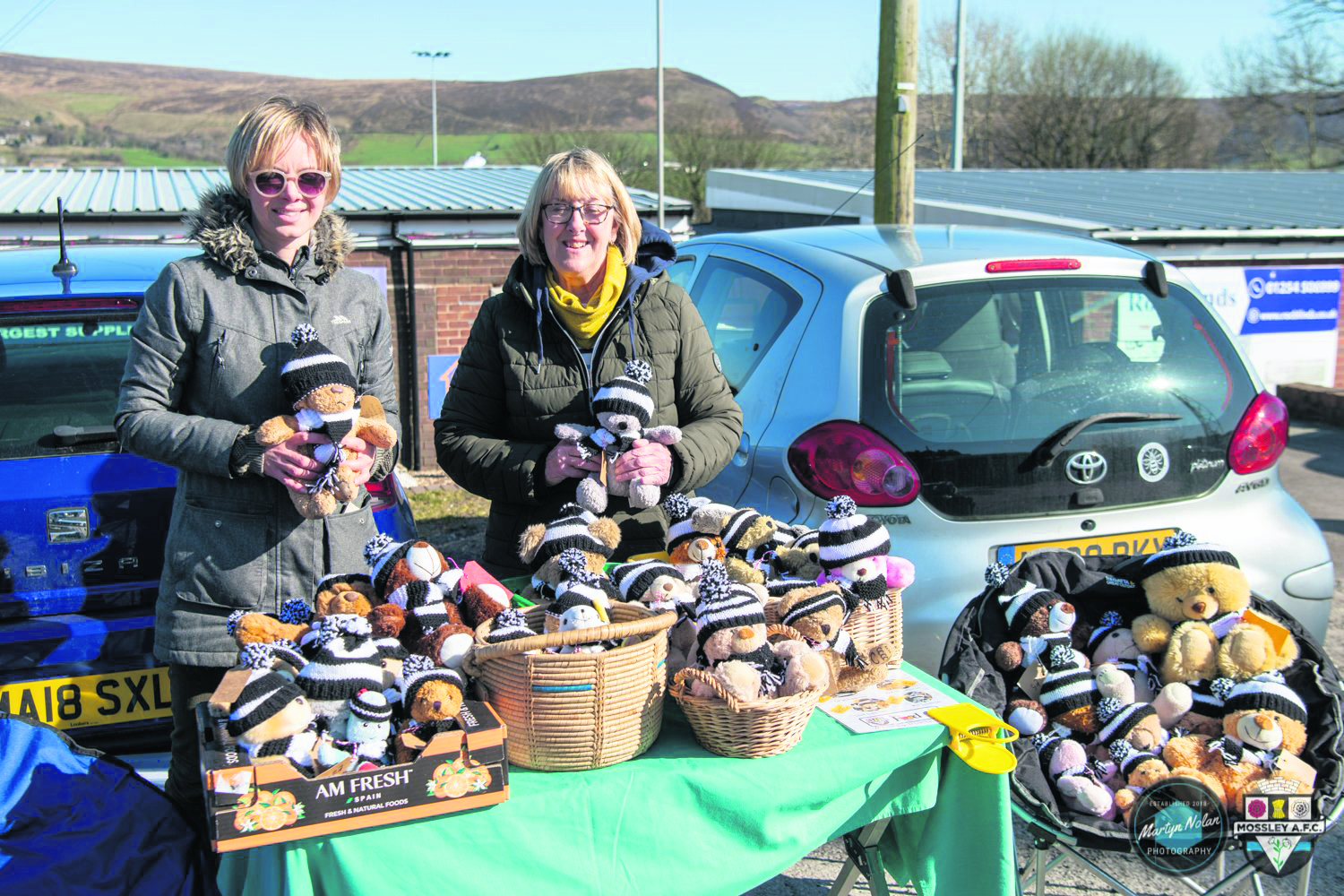 They knitted hats and scarves in Mossley’s black and white colours during their ‘knit and natter’ sessions, and the teddy bears went on sale when ReCreate hold a pop-up stall at a recent game.
