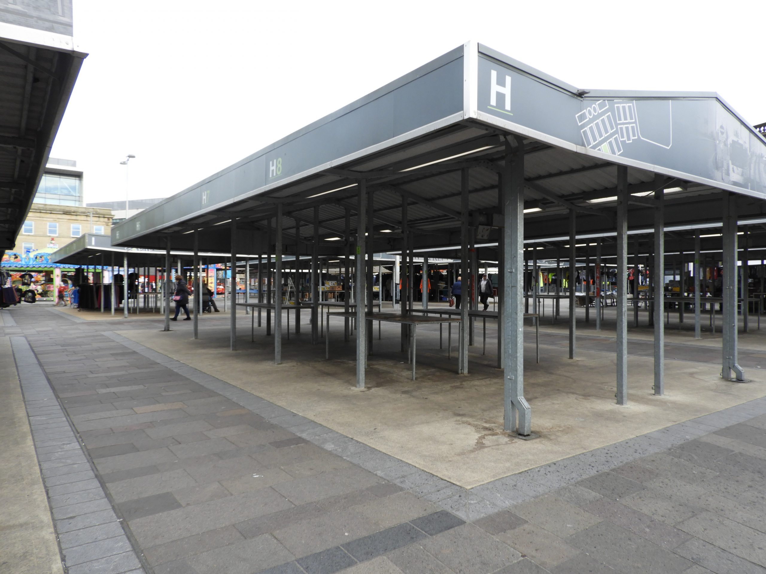 If you construct one big canopy as shown, unless it is full of traders it will still attract the drinking and cannabis smokers (walk past any day and you can smell it) to the empty stalls, as at present, which will deter even more shoppers!
