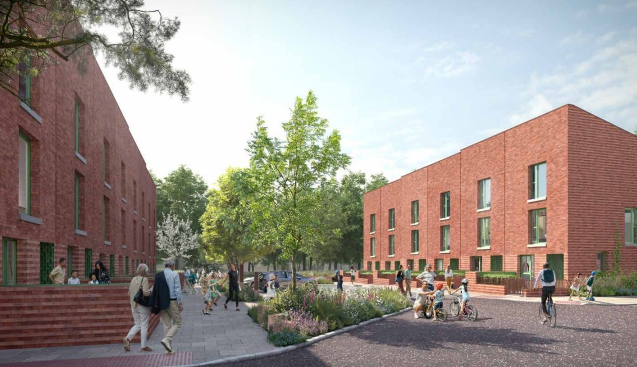 A total of 44 two and three-bedroomed townhouses and 58 one and two bedroomed-apartments, will be built on land around Harrop Street, Water Street and Market Street.